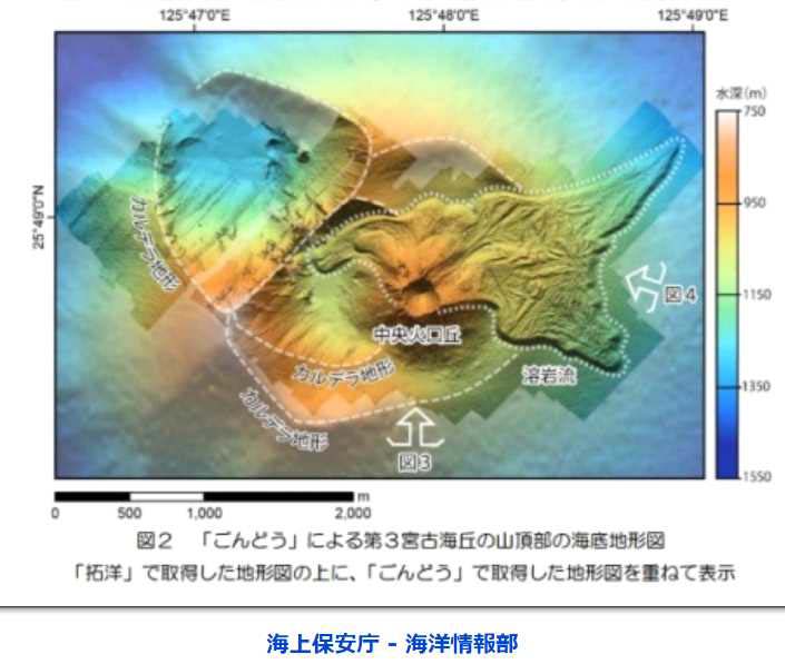 「九州の火山と沖縄の火山」(一口メモ) (宮古島近海海底火山の地形)