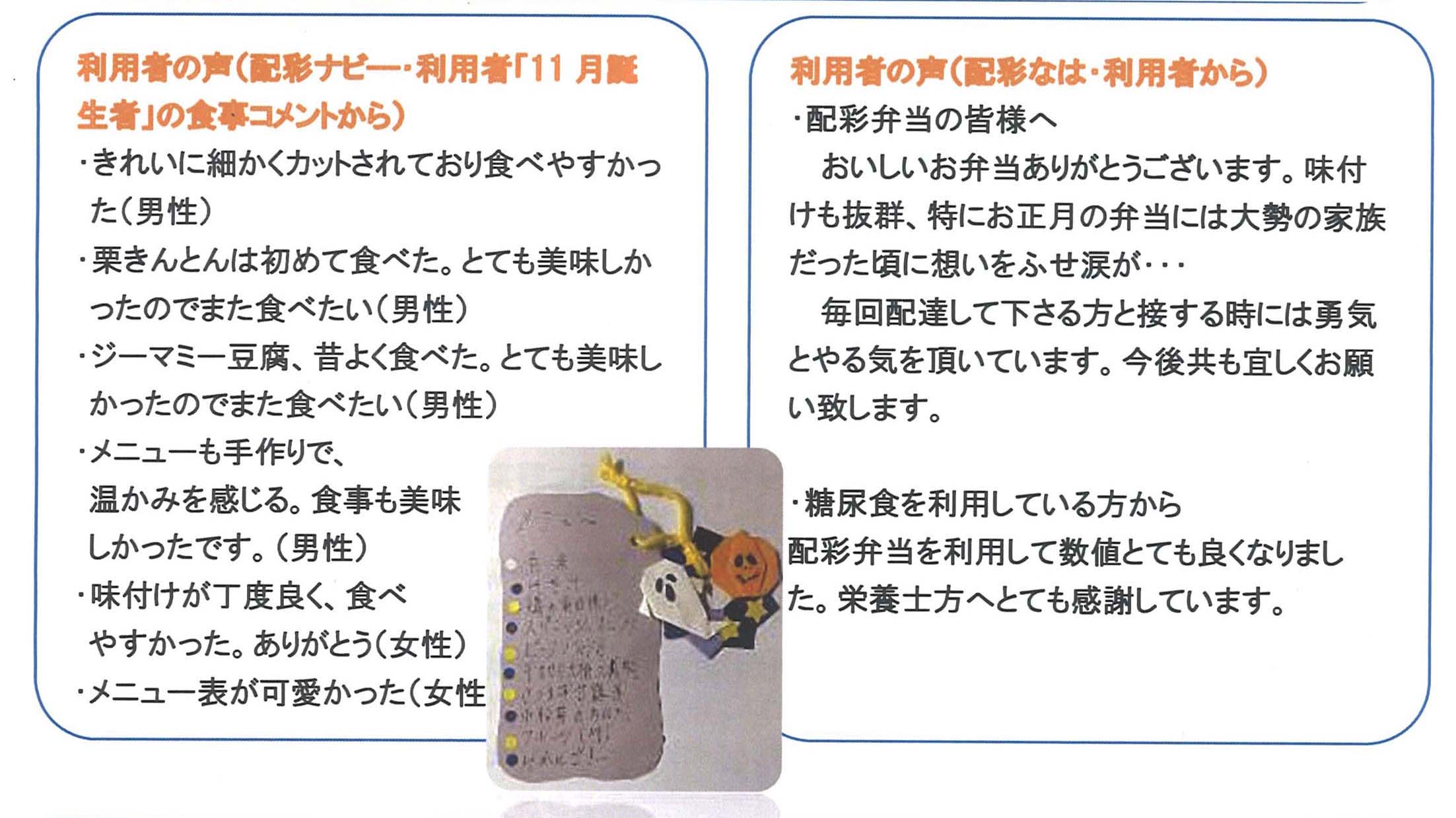 ・利 用 者 の 声(配彩ナビー)(音声による朗読 2023年度)