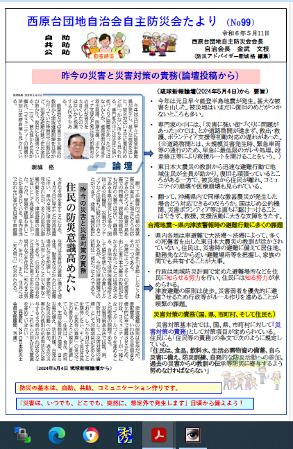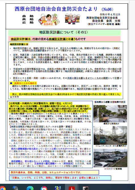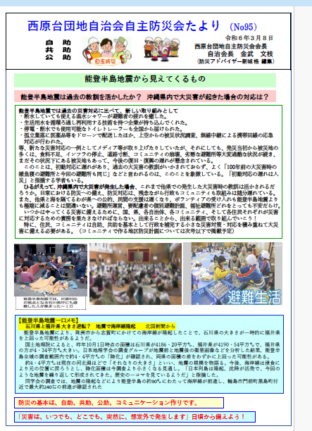 西原町西原台団地自治会事務所の自主防災活動内容紹介